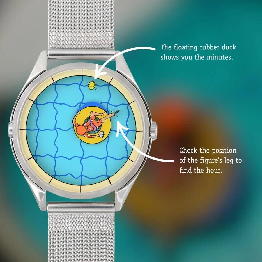 Yes, you read that correctly. The Horizon watch features a rubber duck floating in a pool of blue water. The duck's position shows minutes, while its leg orientation indicates hours. It's absurd, delightful, and genuinely innovative.